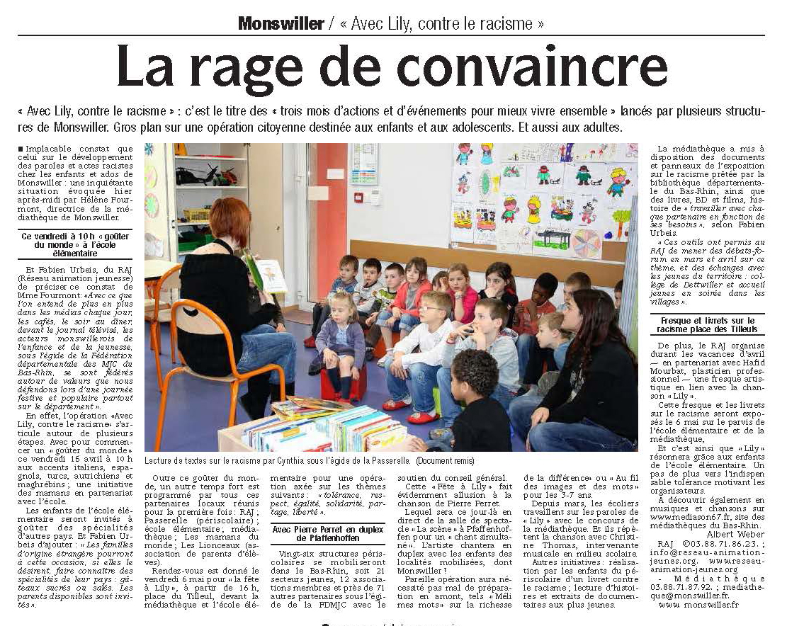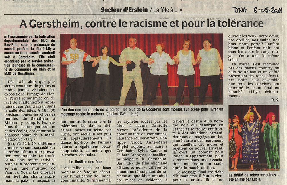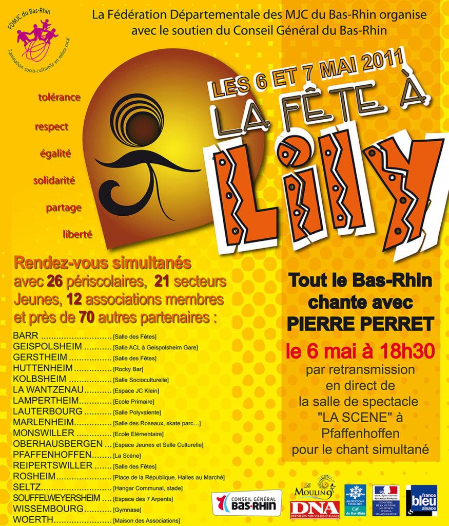 La FDMJC avec la participation de son réseau d’associations, de ses professionnels, de ses militants et bénévoles a organisé sur 18 lieux disséminés dans tout le Bas-Rhin, la Fête à Lily, les 6 et 7 mai 2011.